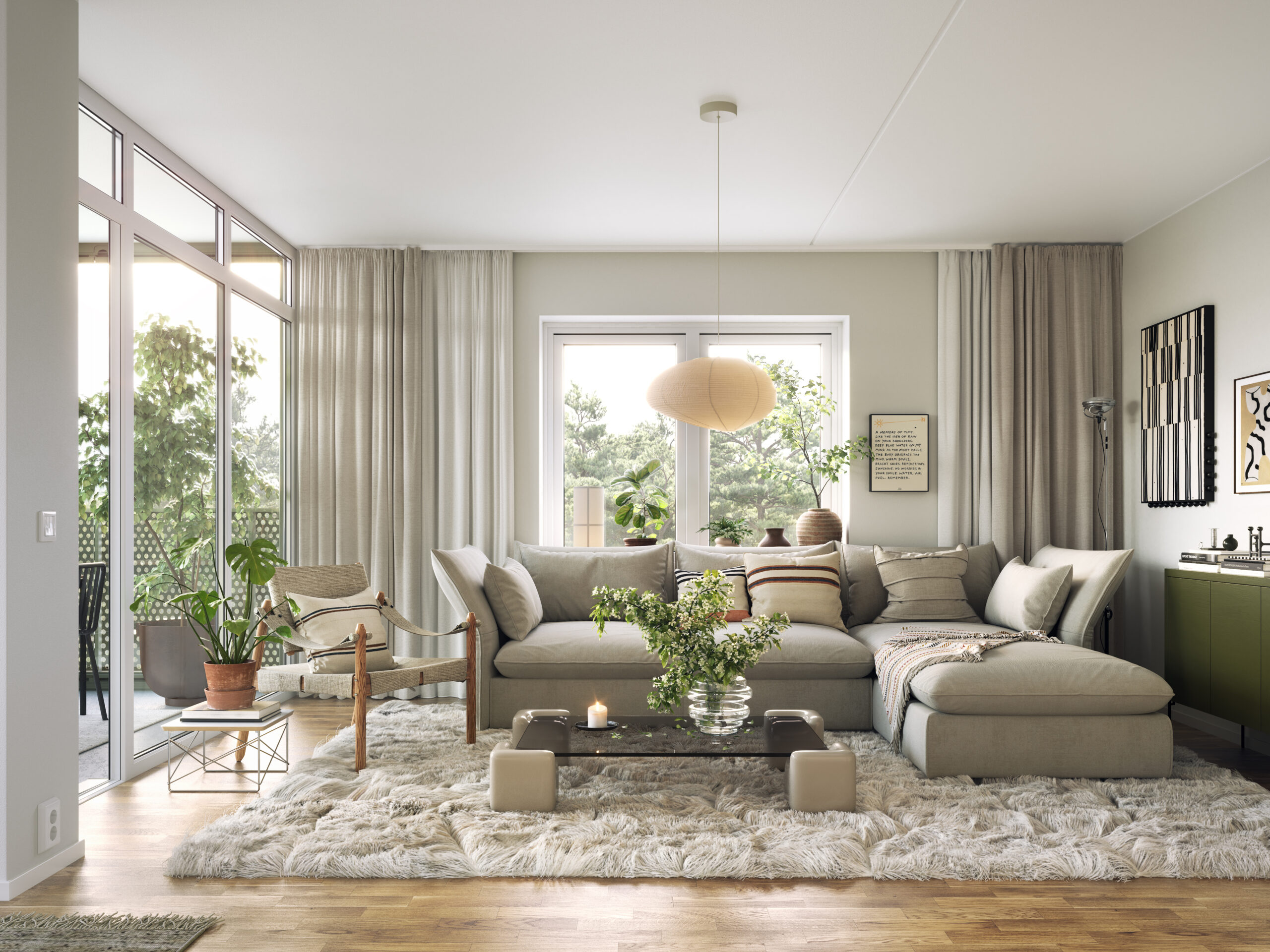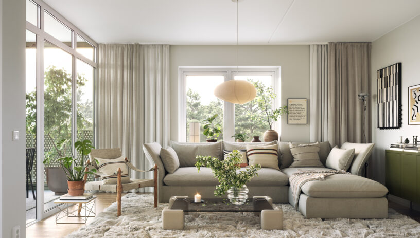 Vardagsrum med stora ljusinsläpp