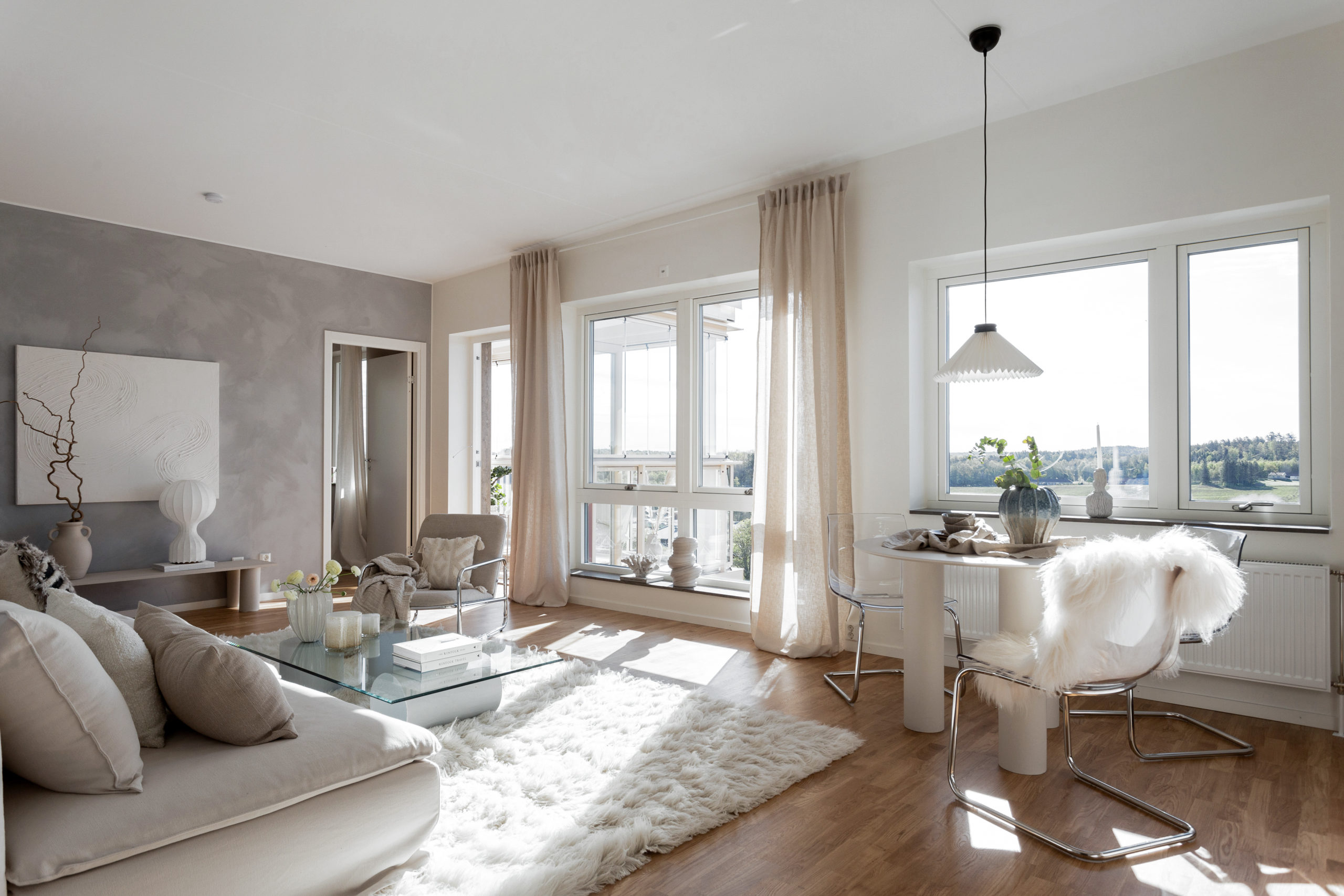 Ditt nya hem i Brf Utblicken lyckas med konststycket att vara både tidlöst och trendigt. Den utvalda färgpaletten i ljusa toner matchas med lackad ekparkett, vilket låter dig sätta egen prägel med accentfärger och textiler. Det stilrena köket erbjuder modern utrustning som låter dig förbereda inför såväl vardagsmaten som helgens middagsbjudning eller bullstök. Det helkaklade badrummet följer lägenhetens formspråk samt är utrustat med egen tvättmaskin och torktumlare. Lägenheterna är välplanerade och utformade för att trivas i. Material och utrustning är noggrant utvalda och håller genomgående mycket hög standard.