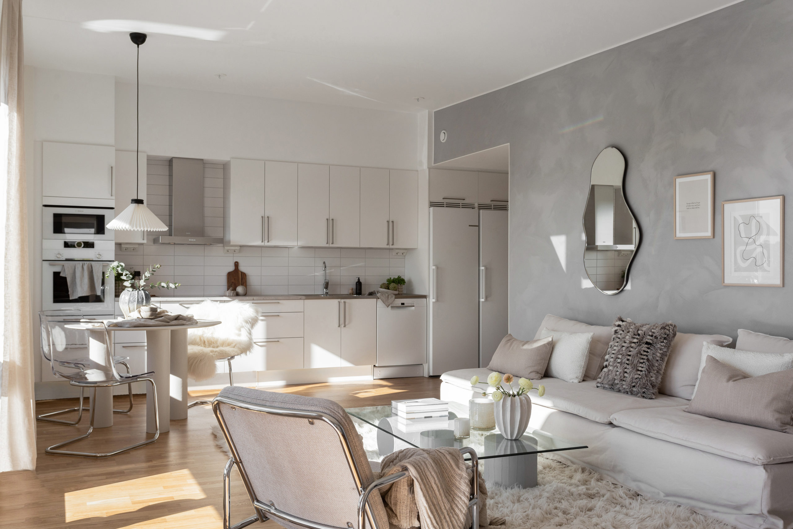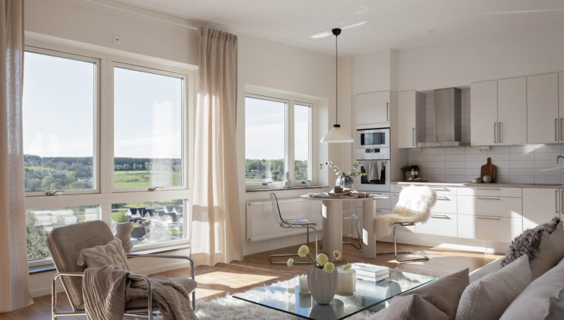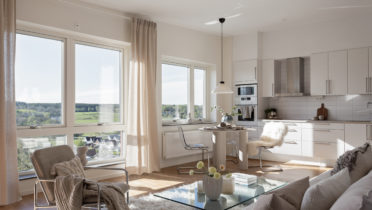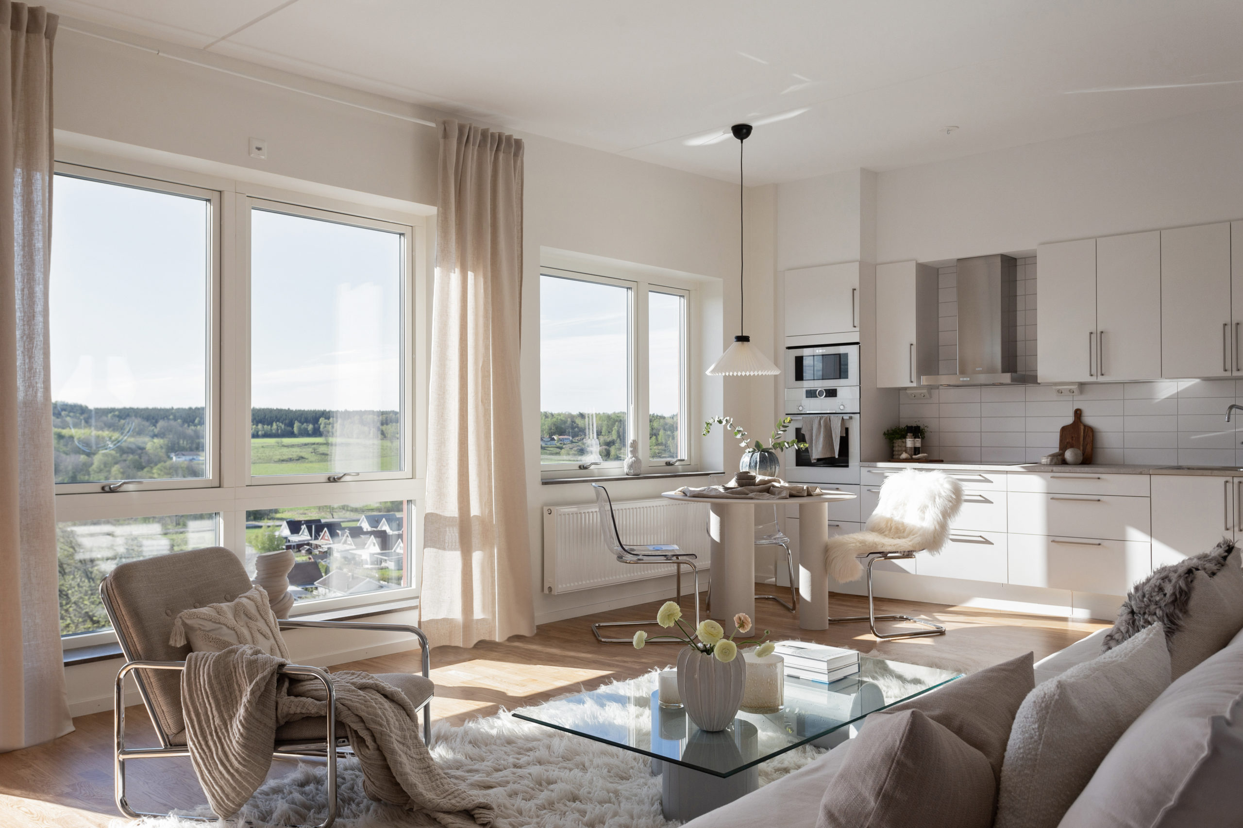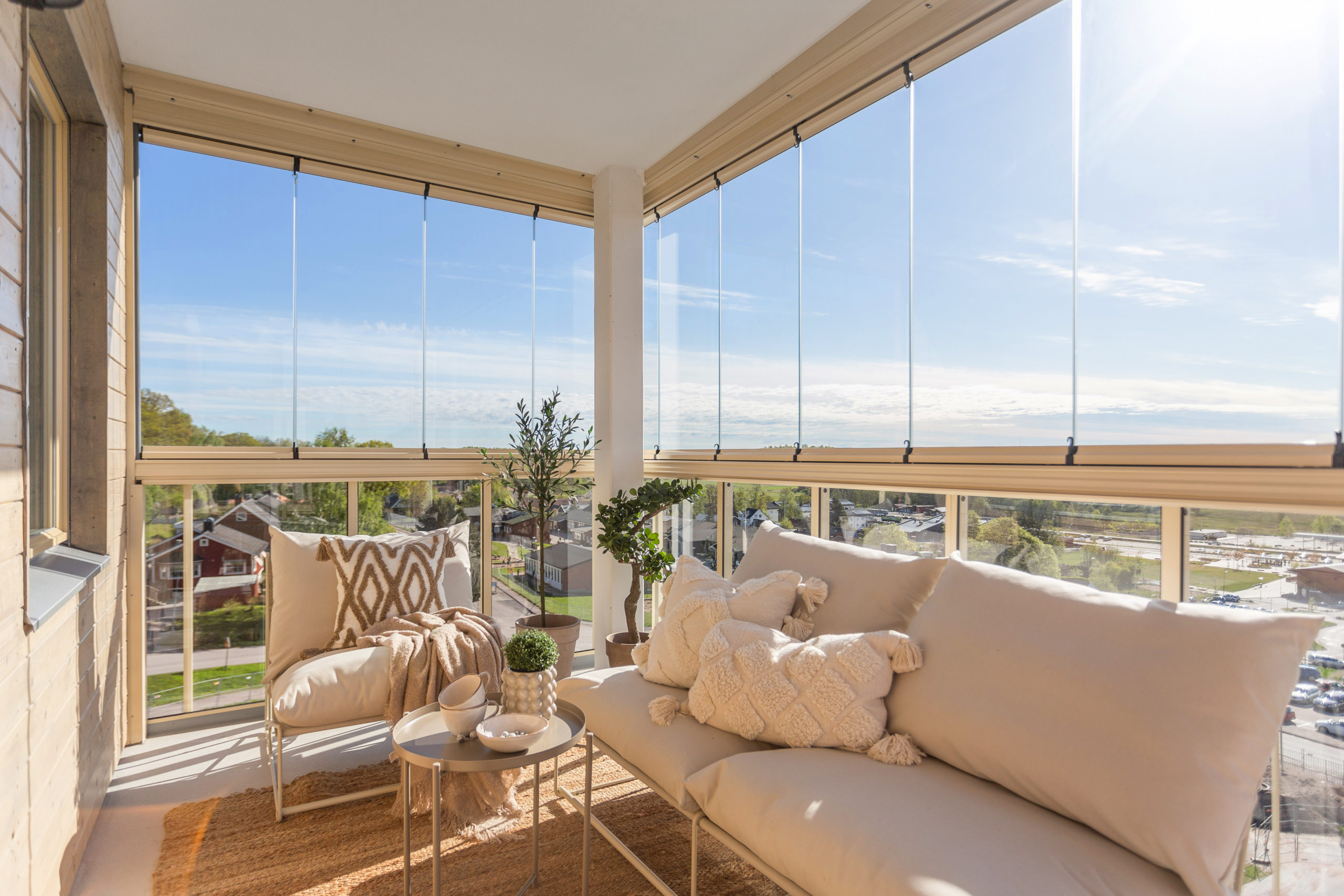 Planlösningen är öppen mellan kök och vardagsrum, det finns gott om plats att välkomna hem till både vardag och fest. Tack vare generös takhöjd och fönsterpartier får rummet en luftig och rymlig känsla. Öppnar du upp ut mot den inglasade balkongen får du ytterligare ett rum att njuta av under årets ljusare delar. När det kommer till förvaring har inget lämnats åt slumpen. Samtliga lägenheter erbjuder både klädkammare och skjutdörrsgarderober, som rymmer allt det du inte kan eller vill vara utan. På entréplan finns dessutom ett eget lägenhetsförråd där du enkelt förvarar det du behöver mer sällan.
