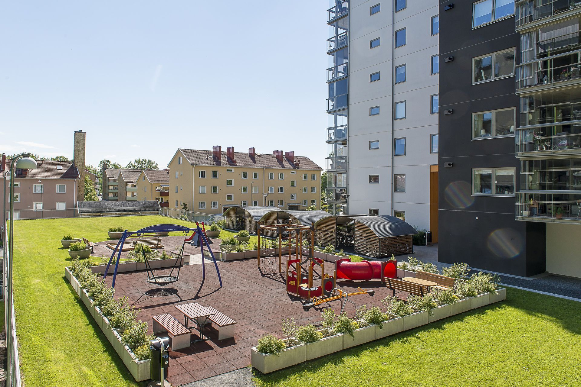 Bogesundsparken är ett mycket omtyckt bostadsområde med ett naturskönt läge intill den gamla banvallen. En kombination av det bästa av två världar – naturen inpå knuten och city inom cykel – och gångavstånd. Förutom den svarta fasaden kännetecknas höghusen av de utstickande helglasade balkongerna från vilka man har utsikt över stora delar av Jönköping, en utsikt att njuta av!