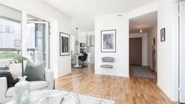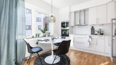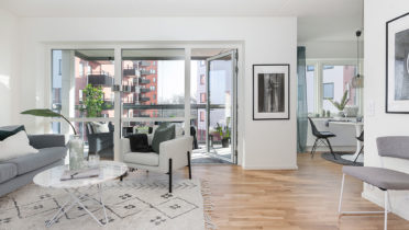 Vi vill att du ska får ett hem att trivas och må bra i. Tack vare den höga rumshöjden, stora glasade ytor och det öppna förhållandet mellan kök, vardagsrum och balkong eller uterum får lägenheterna en känsla av  både rymd och öppenhet. Sovrummen har samma rymliga höjd till taket och ytorna är på rätt ställen. Grundtonen i hemmet är ljus och utgår från vita väggar och lackad ekparkett. Köksinredningen är rakt igenom stilren och fullutrustat med vita luckor och moderna vitvaror. Våtrummen är helkaklade i tidlösa färger och har både tvättmaskin, torktumlare och praktiska förvaringslösningar. Du får gott om förvaringsutrymmen i din nya bostad. Alla lägenheter har klädkammare och ett separat lägenhetsförråd i källarplan. Utöver detta har varje bostad 2-3 rok en stor skjutdörrsgarderob både i hallen och i det stora sovrummet.