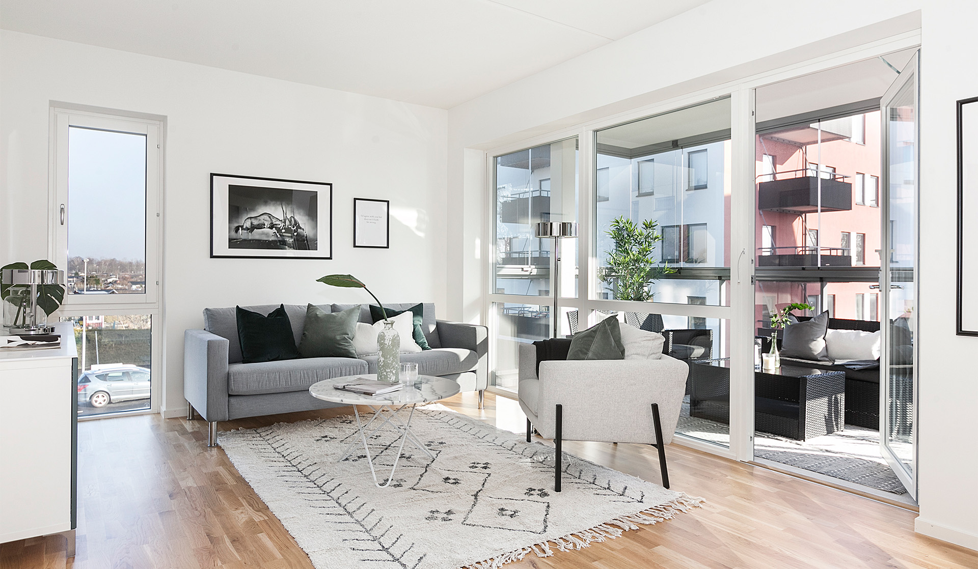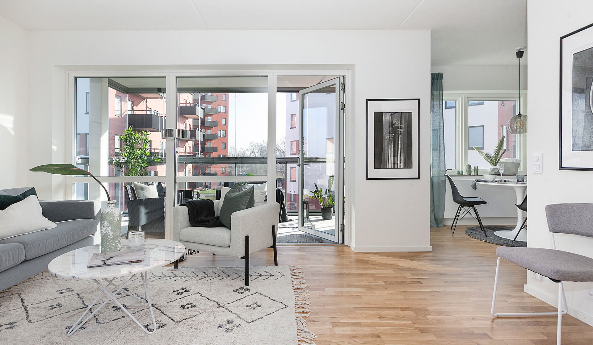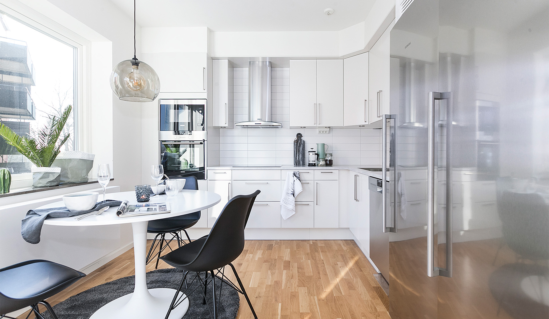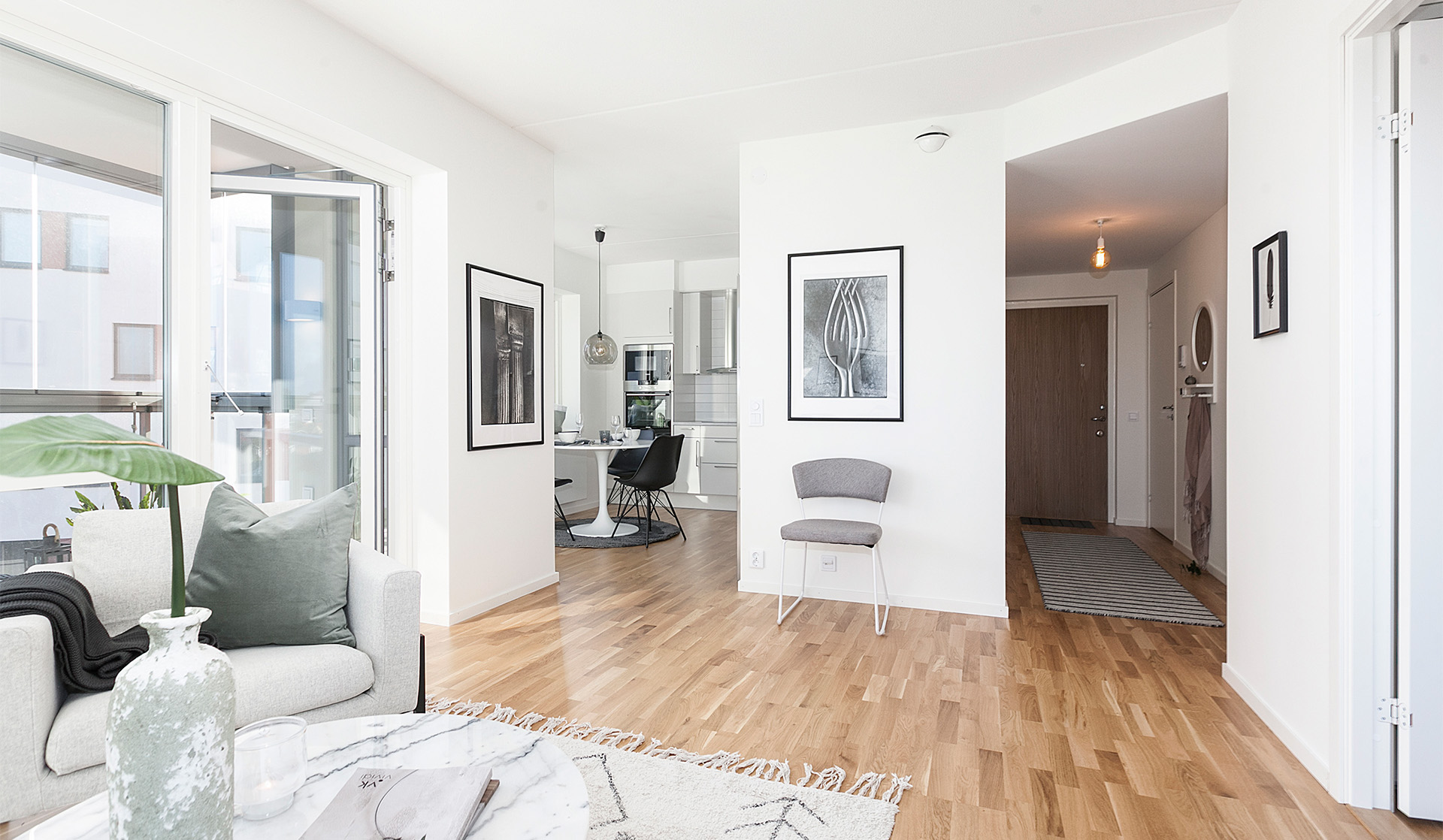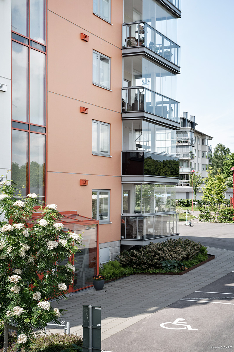 Vi vill att du ska får ett hem att trivas och må bra i. Tack vare den höga rumshöjden, stora glasade ytor och det öppna förhållandet mellan kök, vardagsrum och balkong eller uterum får lägenheterna en känsla av  både rymd och öppenhet. Sovrummen har samma rymliga höjd till taket och ytorna är på rätt ställen. Grundtonen i hemmet är ljus och utgår från vita väggar och lackad ekparkett. Köksinredningen är rakt igenom stilren och fullutrustat med vita luckor och moderna vitvaror. Våtrummen är helkaklade i tidlösa färger och har både tvättmaskin, torktumlare och praktiska förvaringslösningar. Du får gott om förvaringsutrymmen i din nya bostad. Alla lägenheter har klädkammare och ett separat lägenhetsförråd i källarplan. Utöver detta har varje bostad 2-3 rok en stor skjutdörrsgarderob både i hallen och i det stora sovrummet.