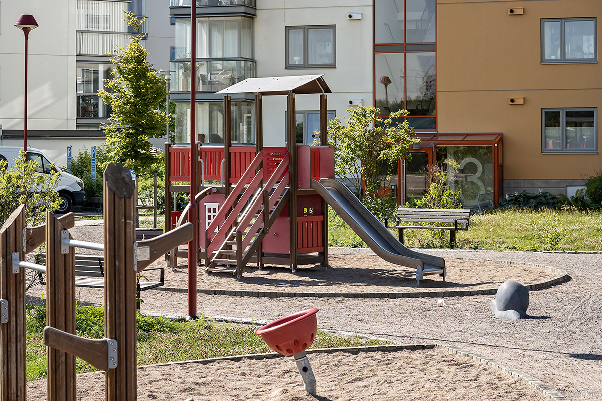Gården är fri från genomfartsrafik. Boendeparkering sker i parkeringsgaraget under innergården eller på parkeringsplats utomhus. Garaget når du med hiss från bostadshusens källarplan där även cykelförrådet finns.
