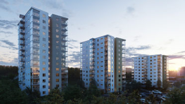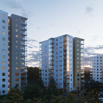 Med vacker utsikt över Vättern, Bondberget, Jönköping och Huskvarna har vi byggt 193 nya hyresrätter i projektet Öxnehöjden. Med vattnet i blickfånget, centrum och naturen runt knuten reser sig de tre husen på 10-, 12- och 14-våningar. Husen erbjuder allt från yteffektiva ettor till rymliga treor, alla med underbar utsikt över omgivningen. Lägenheterna är noggrant planerade, med gott om förvaringsmöjligheter, bra materialval och utrustning som håller genomgående hög kvalitet. Merparten av lägenheterna har en egen inglasad balkong och bilen parkeras enkelt i garaget eller på parkeringsplats i anslutning till husen, där det också ges möjlighet till elbilsladdning.