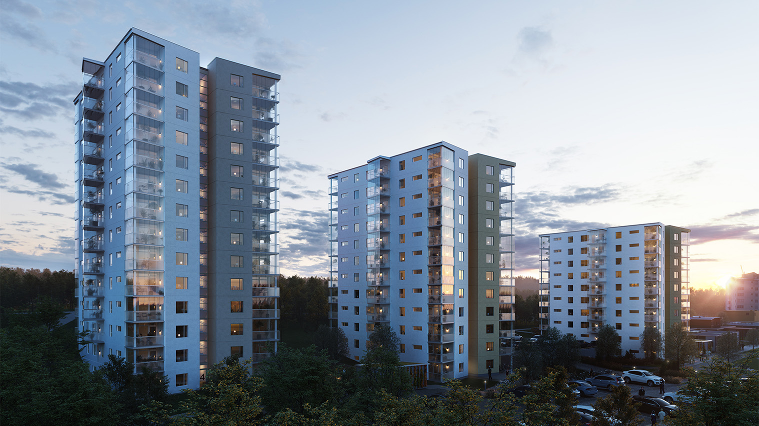 Med vacker utsikt över Vättern, Bondberget, Jönköping och Huskvarna har vi byggt 193 nya hyresrätter i projektet Öxnehöjden. Med vattnet i blickfånget, centrum och naturen runt knuten reser sig de tre husen på 10-, 12- och 14-våningar. Husen erbjuder allt från yteffektiva ettor till rymliga treor, alla med underbar utsikt över omgivningen. Lägenheterna är noggrant planerade, med gott om förvaringsmöjligheter, bra materialval och utrustning som håller genomgående hög kvalitet. Merparten av lägenheterna har en egen inglasad balkong och bilen parkeras enkelt i garaget eller på parkeringsplats i anslutning till husen, där det också ges möjlighet till elbilsladdning.