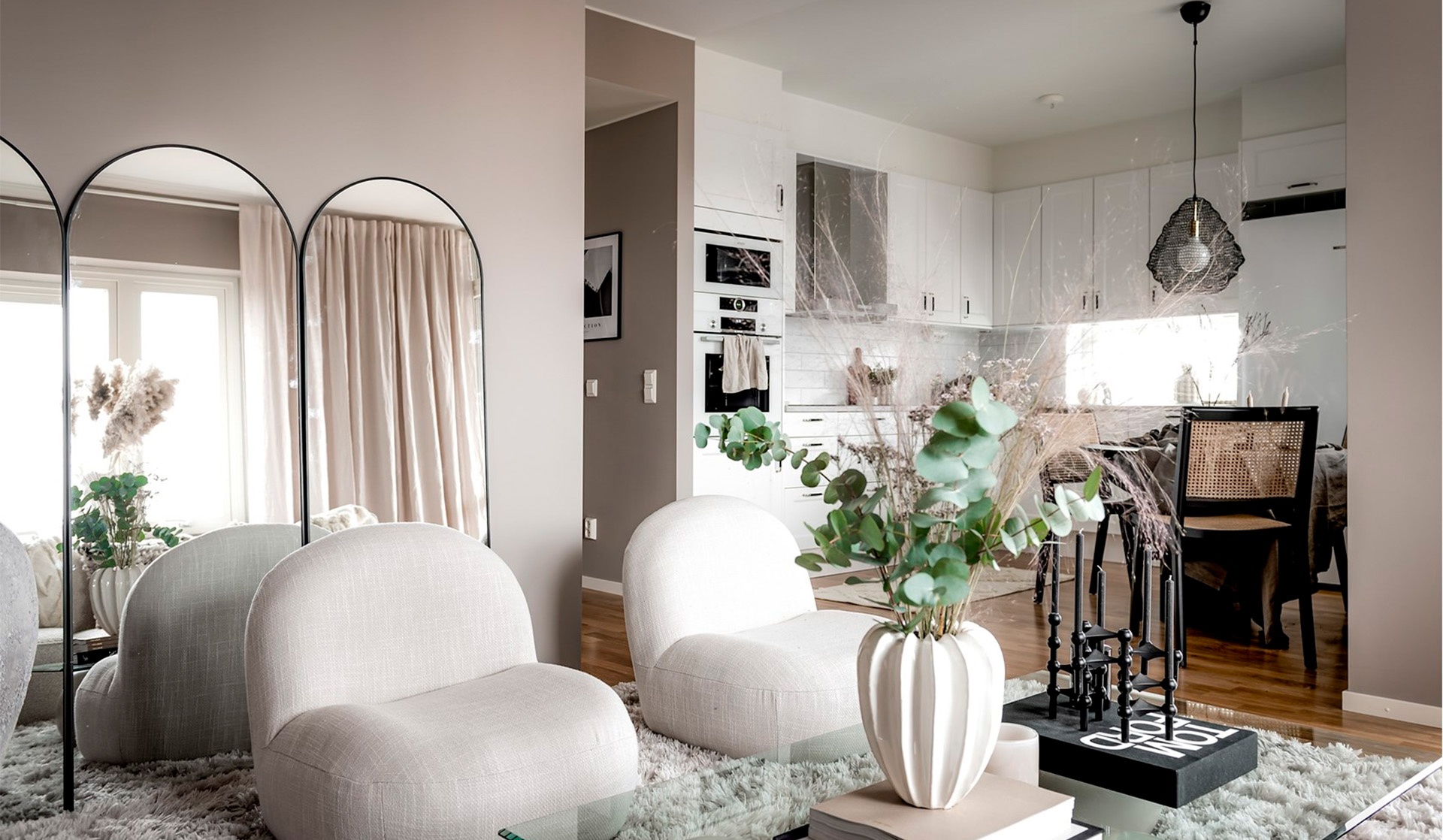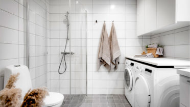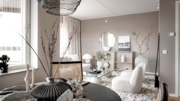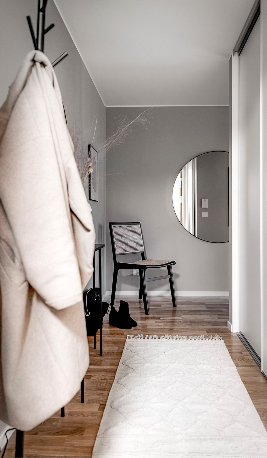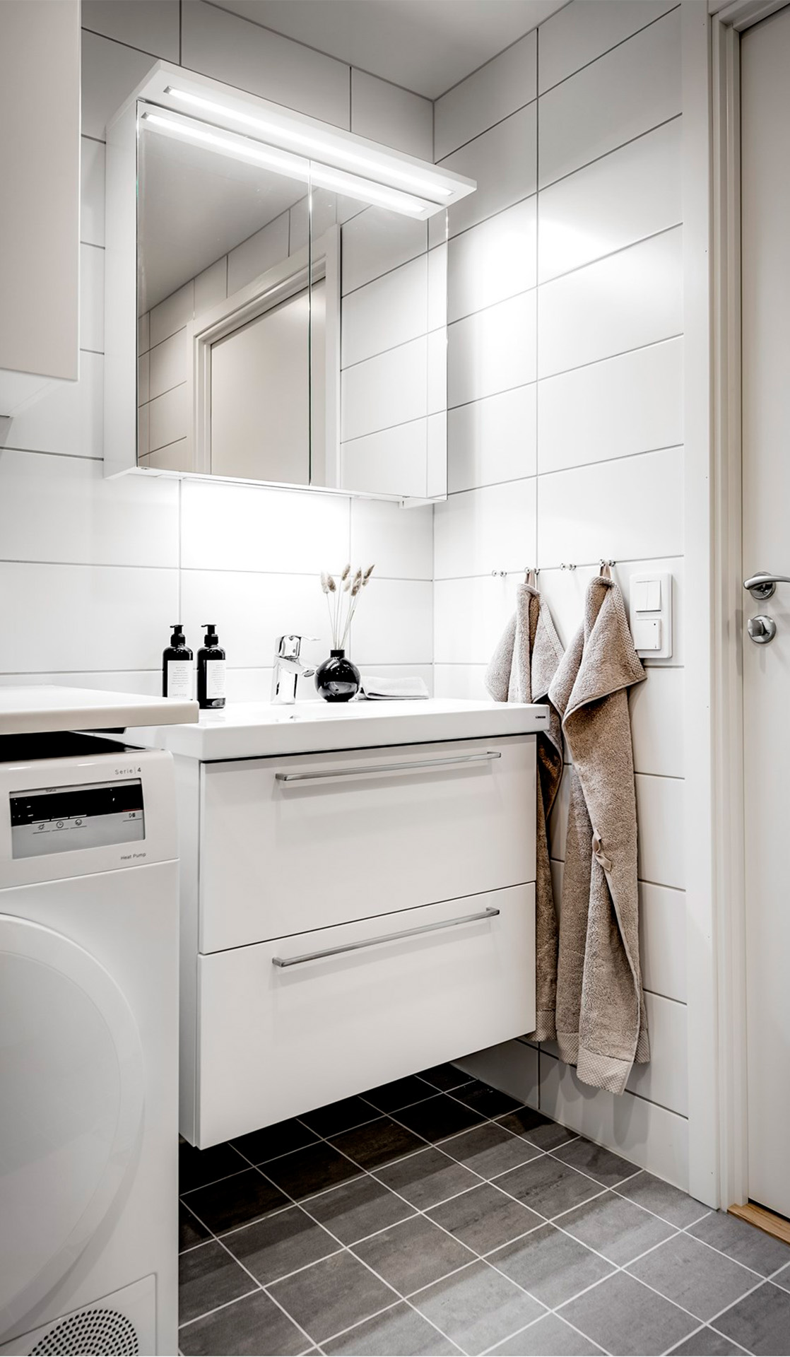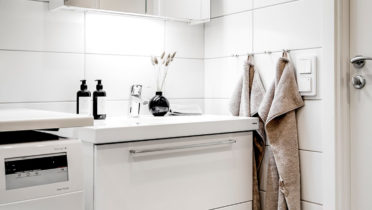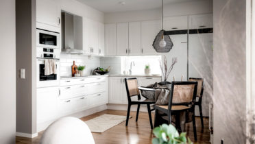 Den utvalda färgpaletten i ljusa toner matchas med lackad ekparkett. Det stilrena köket erbjuder modern utrustning och inbjuder till såväl vardagens pasta carbonara som helgens middagsbjudning eller bullstök. De helkaklade badrummet följer lägenhetens formspråk samt är utrustat med tvättmaskin och torktumlare. När det kommer till förvaring har inget lämnats åt slumpen, då det erbjuds både klädkammare och skjutdörrsgarderober. Utöver detta finns förråd, beläget på entréplanet, samt ges möjlighet att hyra garageplats.